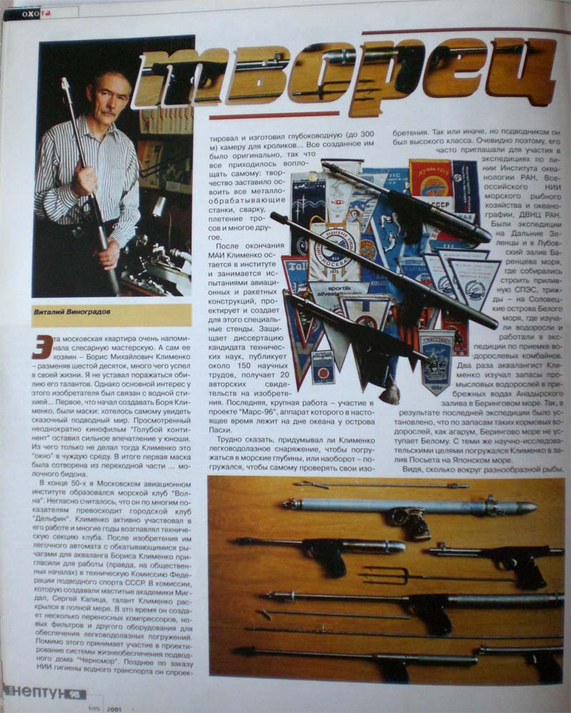 Статья В.Виноградова о Борисе Клименко "Творец" , журнал "Нептун" 2001 год, с.98-99.