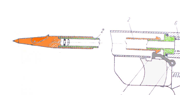 Беспоршневое ружье - гарпун в качестве поршня (оранжевый цвет).